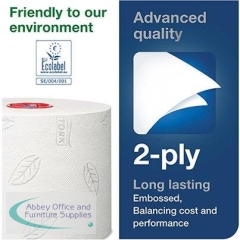 Ideal for medium-traffic washrooms where a high level of guest satisfaction is important, Tork Advanced mid-size toilet roll is soft, simple and incredibly cost-effective. With 100 metres to a single roll, this toilet roll will get the job done and run out far less often than traditional rolls.