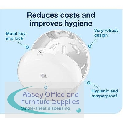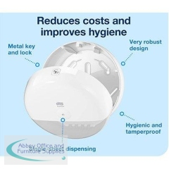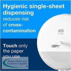 Ideal for busy washrooms, the Tork SmartOne T8 toilet roll dispenser ensures a more hygienic experience for visitors. As one sheet is dispensed at a time, the risk of contamination is significantly reduced, Plus it means that consumption can be lowered by up to 40% compared to traditional dispensers.