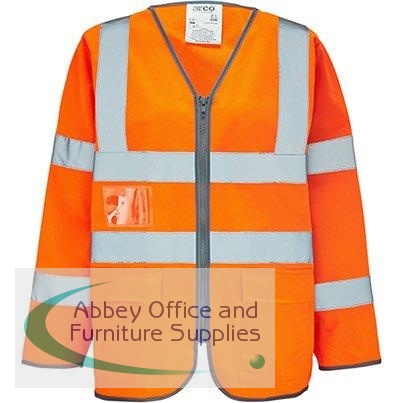 ARC08914 - Arco Ultra Orange Long-Sleeve Zip-Up Hi-Vis Vest XL