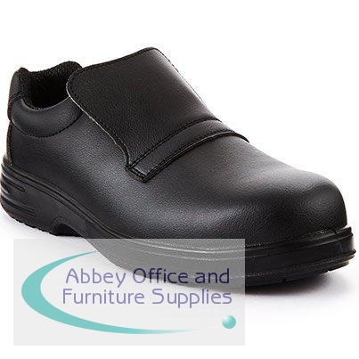 Ideal for use in the food industry, these great-value safety shoes feature a smooth wipe-clean design for excellent hygiene with no lacing system that could harbour food waste. The steel toecaps guard against falling objects, while the slip-resistant PU soles help provide a secure footing.