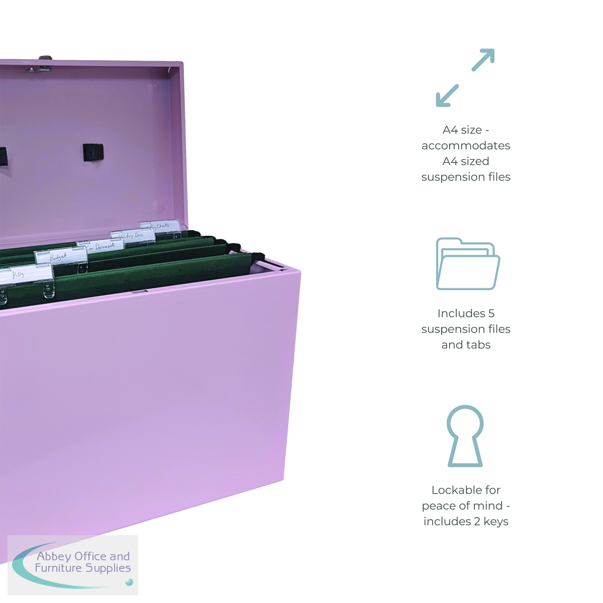 CTH01612 - Cathedral File Box with 5 Suspension Files A4 Pastel Pink FPA4PP