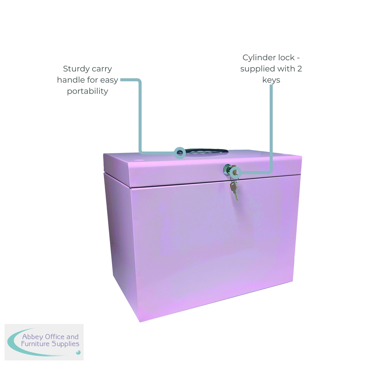 The Cathedral A4 metal home file box is a strong and durable storage solution for all paperwork. Supplied complete with five suspension files, each with a clip-on index tab and paper label. The fold down carry handle makes it easy to transport and the cam lock ensures files are safe and secure.
