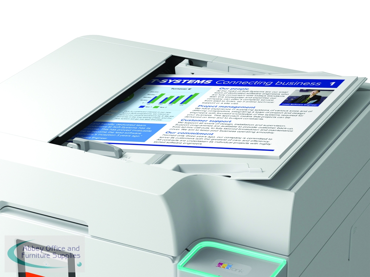 This EcoTank inkjet printer can save up to 95% on the cost of ink. One set of bottles provides up to 63 cartridges worth of ink. Supplied with high yield ink bottles, the integrated ink tanks are easy to fill thanks to the specially engineered ink bottles. With no cartridges to replace, and flexible connectivity features, this is the perfect printer for anyone looking for high-quality prints at an incredibly low cost-per-page.