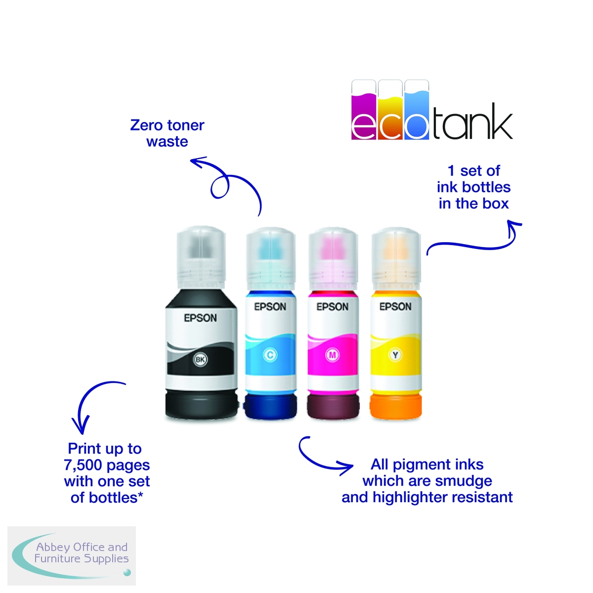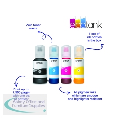 Print, scan, copy and fax with this easy-to-use EcoTank printer, that delivers an exceptionally low cost per page. A4 jobs can be accomplished quickly thanks to fast print and scan speeds, two A4 250-sheet front trays, a 50-sheet rear feed, and a 50-sheet A4 ADF. Print how you like with mobile printing, Ethernet and a 10.9cm LCD touchscreen.