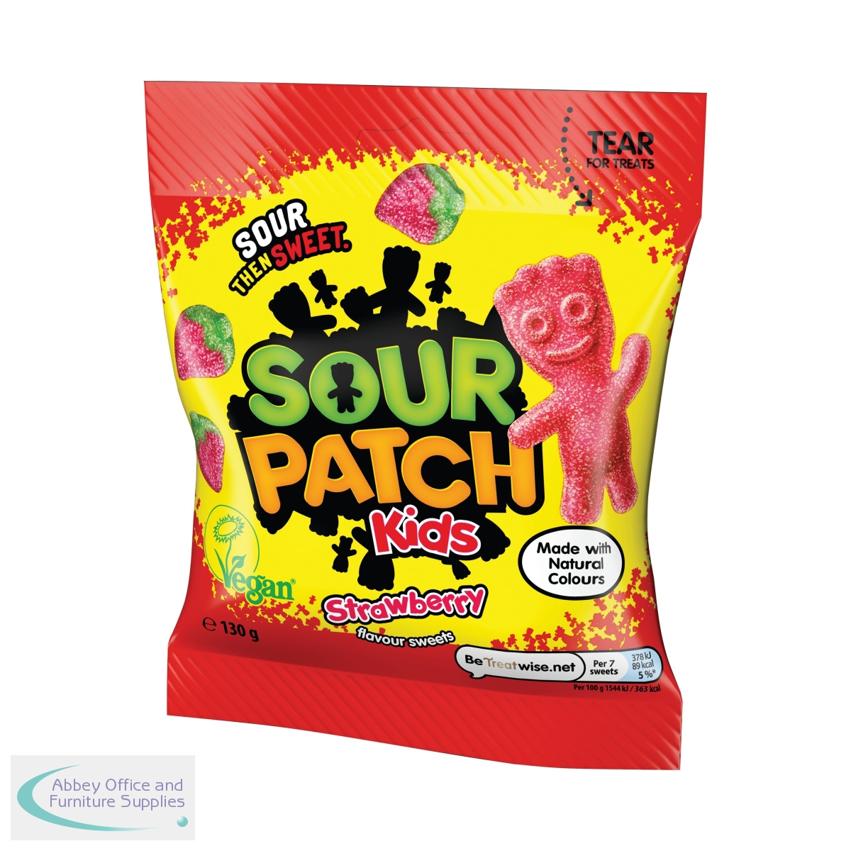 Sour Patch Kids are packed with fruit flavours and a serious sour punch. Packed into a generous 135g bag, these sour gums sweets in strawberry flavour are perfect for sharing or as a sweet treat. Supplied in a pack of 10 x 130g bags.