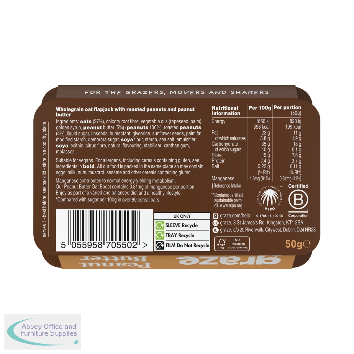 PX70551 - Graze Peanut Butter Oat Boosts Flapjack Snack 50g (Pack of 9) C009534