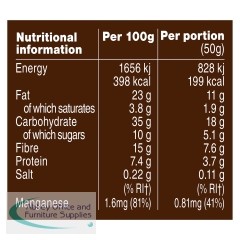 Graze have united creamy peanut butter and roasted peanuts into whole oats for a delicious flapjack snack. This oat flapjack snack uses chicory root fibre, a naturally sweet ingredient, which means this recipe has 60% less sugar than the average cereal bar and still hits the sweet spot. These snacks are ideal for mid-morning snacks along with a coffee, giving an oat-fuelled boost. Supplied in a pack of 9 50g bars.