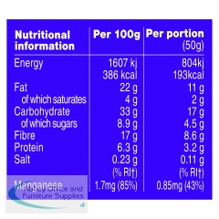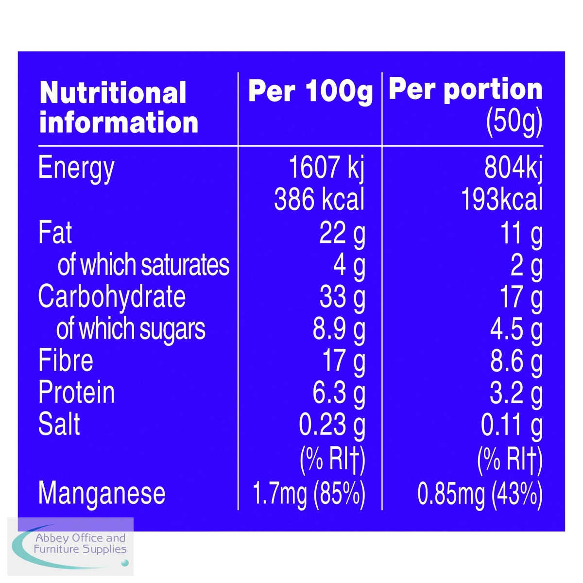 Graze have folded superfood cocoa nibs into whole oats for a delicious flapjack snack. This oat flapjack snack uses chicory root fibre, a naturally sweet ingredient, which means this recipe has 60% less sugar than the average cereal bar and still hits the sweet spot. These snacks are ideal for mid-morning snacks along with a coffee, giving an oat-fuelled boost. Supplied in a pack of 9 50g bars.