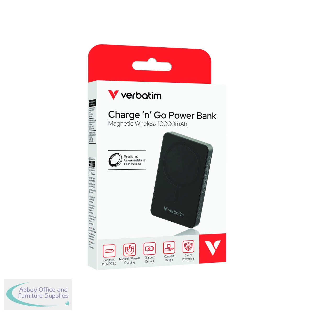 The Verbatim Charge 'n' Go Power Bank delivers dependable, high-capacity charging for your devices. Perfect for those on the move, it provides enough power to charge multiple devices, keeping you connected during long days, business trips, or outdoor adventures. With a lightweight yet durable design, this power bank is built for those who need uninterrupted energy. It offers versatile dual charging options. Enjoy fast 15W magnetic wireless charging for MagSafe iPhones and Android devices and wired charging of up to 20W via USB-C PD. Whether you're working, commuting, or exploring, this power bank ensures your devices are charged quickly and efficiently.