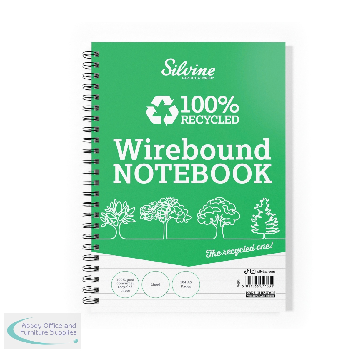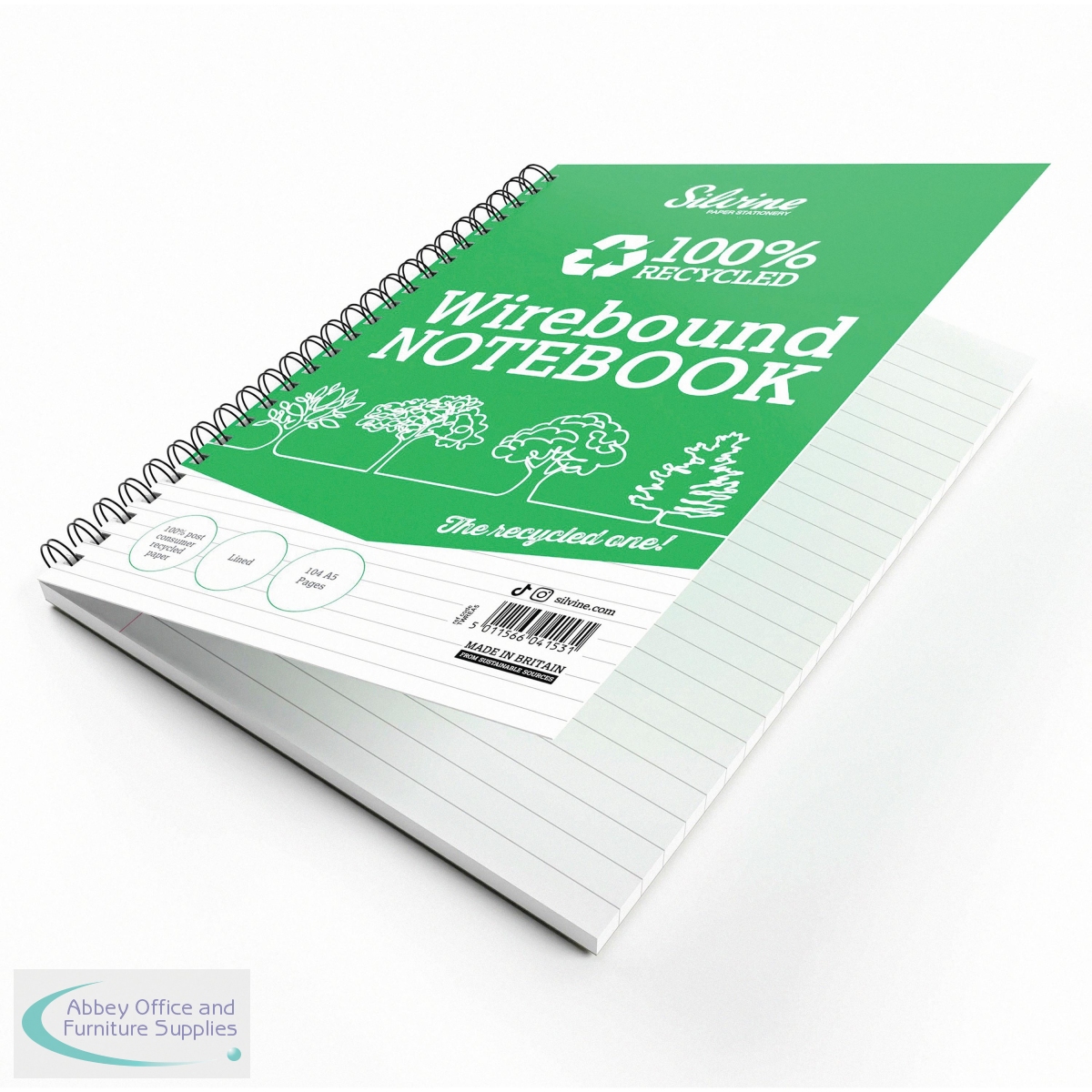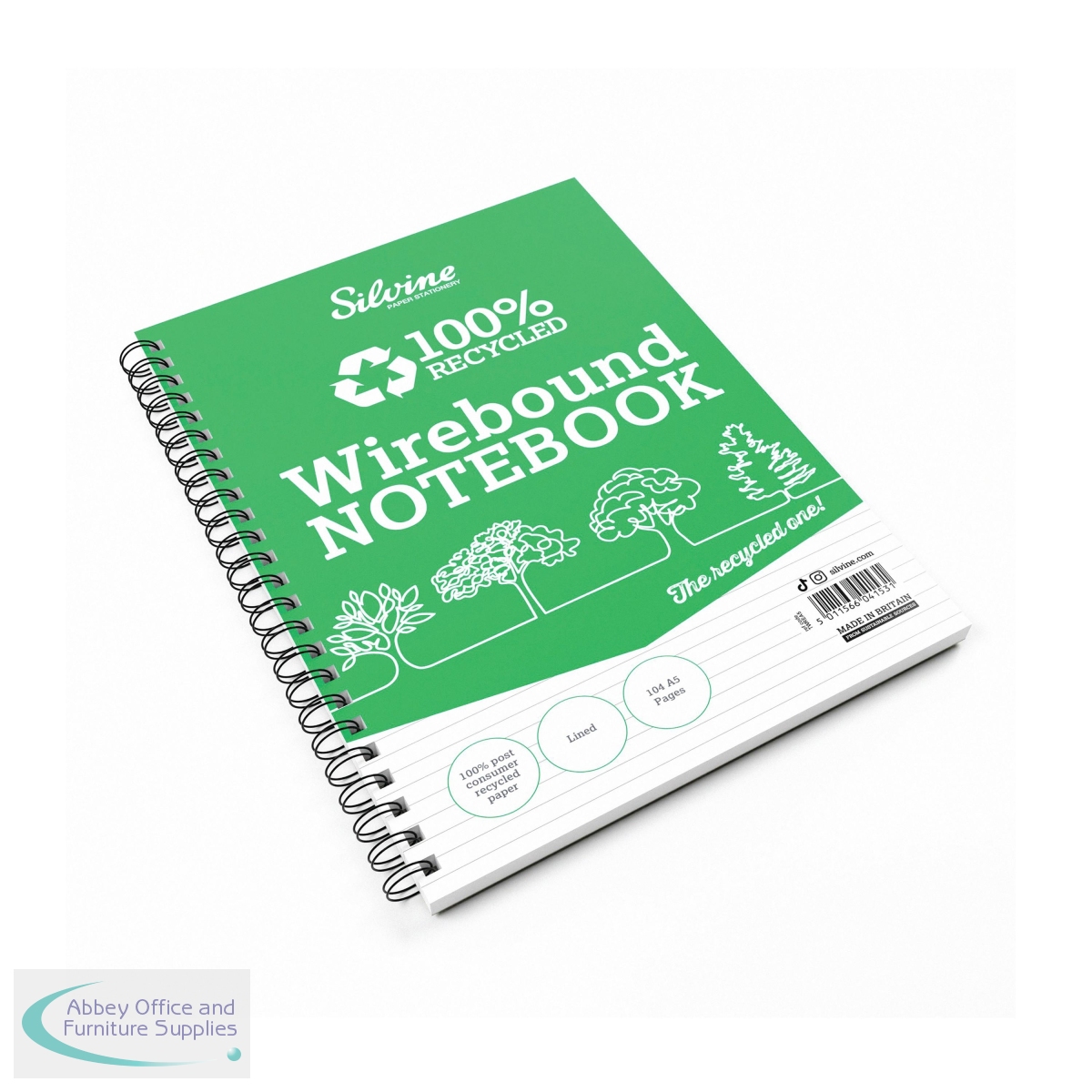 SV44153 - Silvine Recycled Wirebound Notebook Ruled 104 Pages A5 (Pack of 12) TWREA5