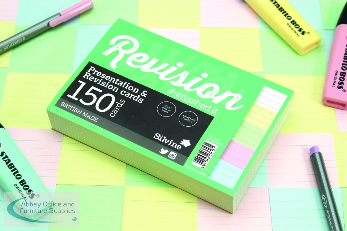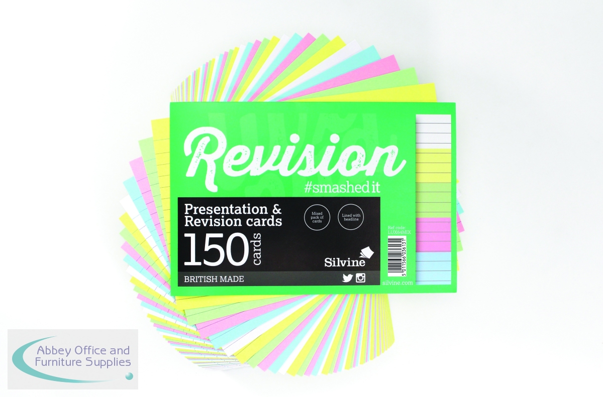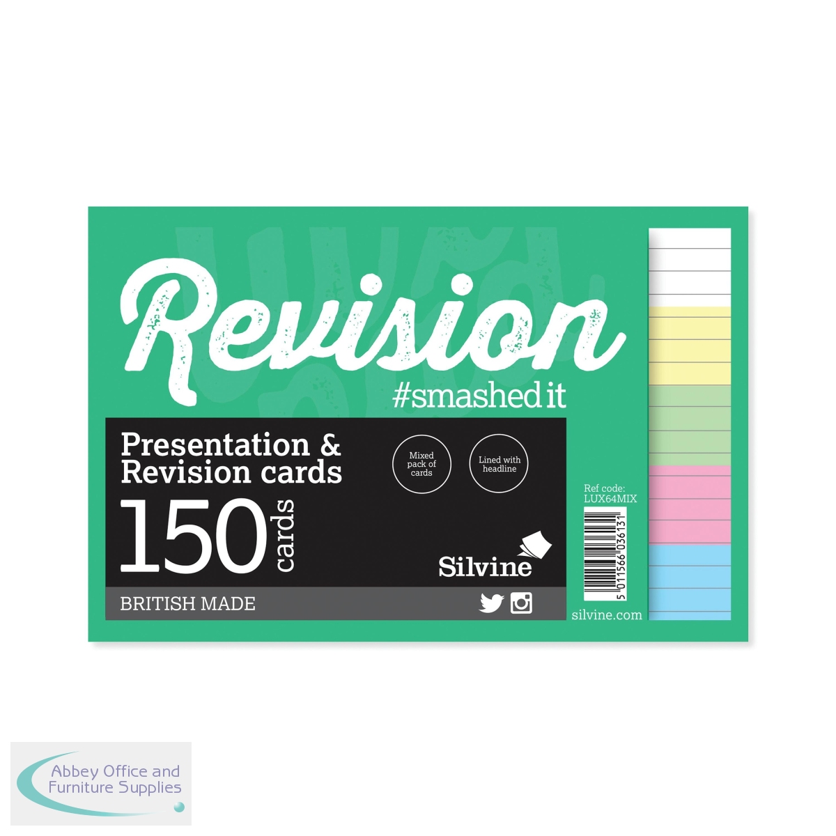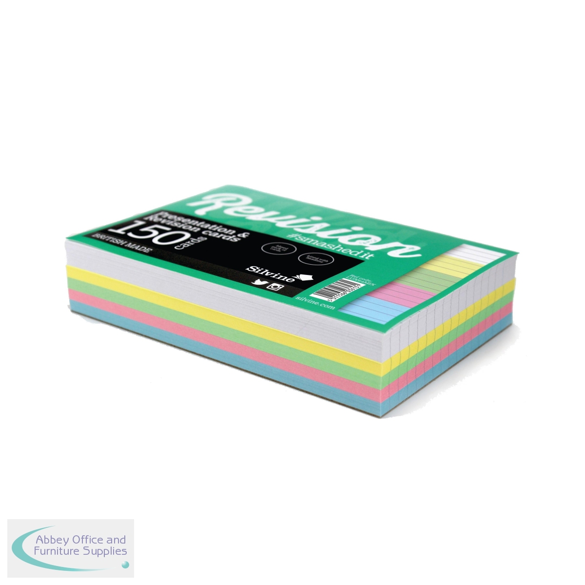 SV43613 - Silvine Revision Presentation Cards Unbound 150 Cards Ruled A6 Assorted (Pack of 8) LUX64MIX