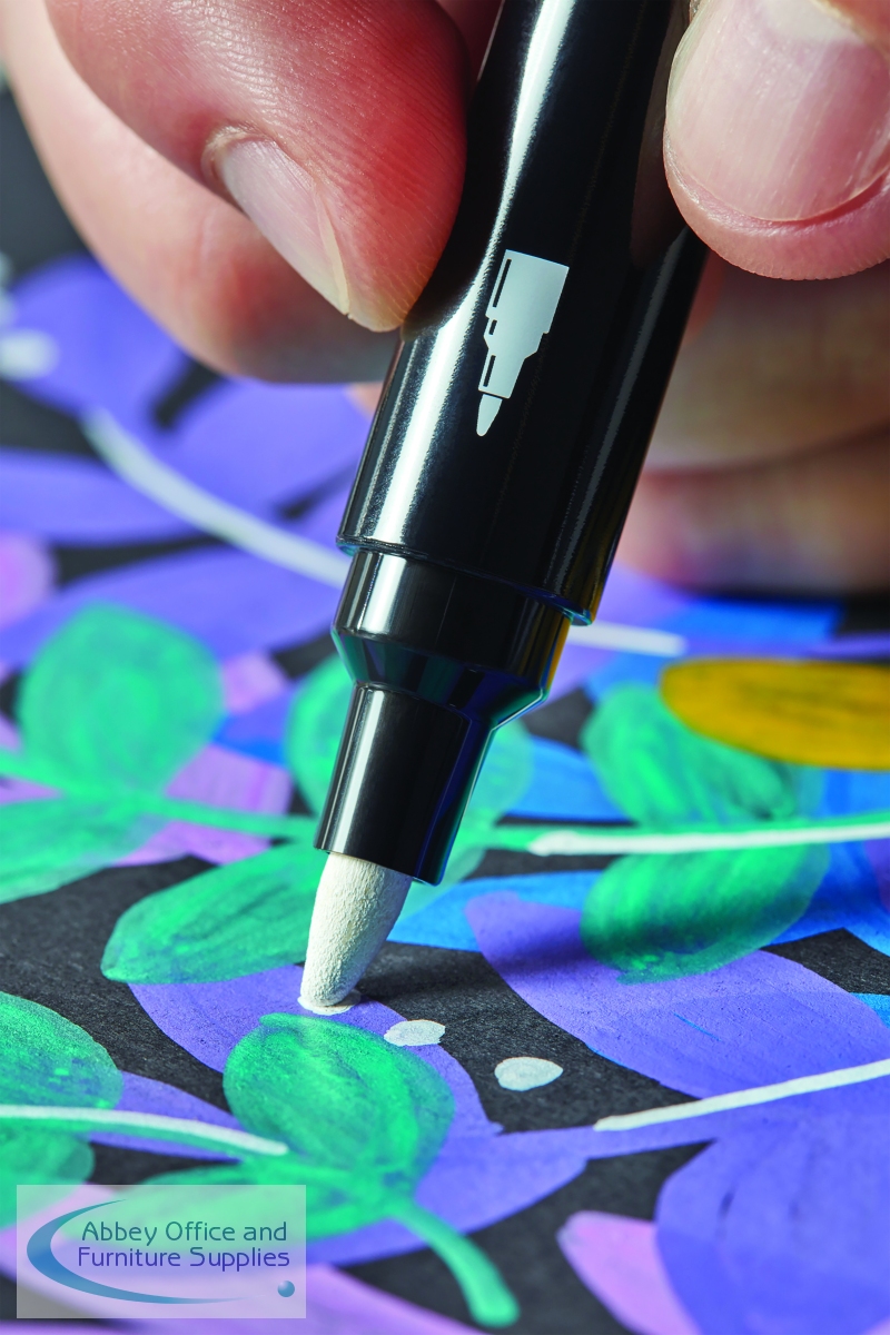 These acrylic markers feature stunning paint-like ink that glides across the page with the control of a marker. The water-based ink will not bleed through, so that work stays clean. These black and white colour paint pens create vibrant marks on light and dark surfaces and boldly mark on paper, metal, wood, ceramic, glass, rock and canvas. The colours layer beautifully to add dimension and there is no need to shake with them - simply uncap and create.