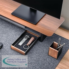 With a touch of design and modernity, combining walnut wood and black aluminium, the Alba pen holder gives a new aesthetic dimension with a mix of colour and materials to transform workplaces with style and elegance. Designed to store pencils, pens, scissors and more, this pen holder measures 74mm diameter with a height of 90mm.