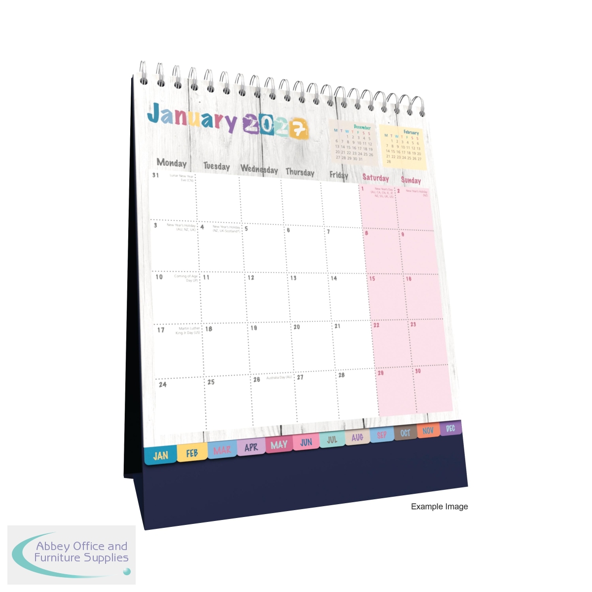 A colourful, wirebound, month to view desk calendar, a compact design, with ample space to write inside each daily entry panel. Wirebound so pages lay flat. Includes international holidays.