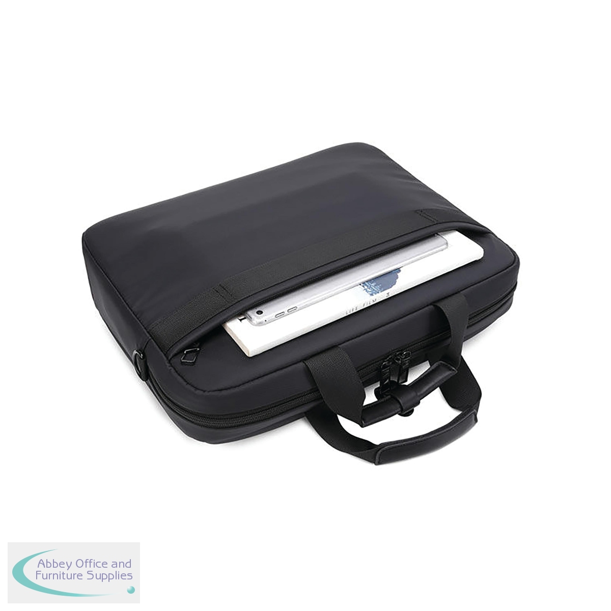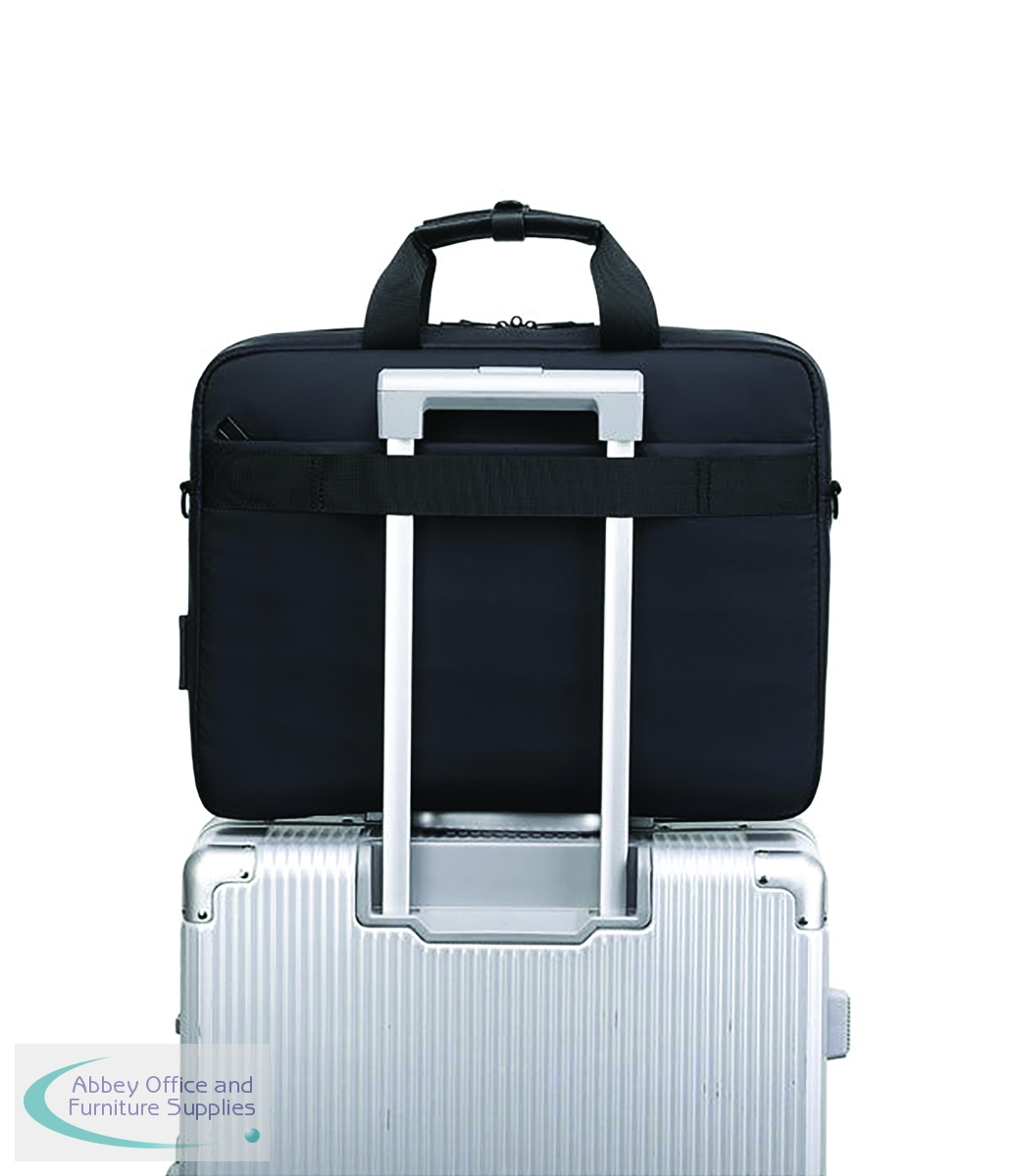 Briefcase with padded compartments for tablets and laptops up to 15.6 inches.