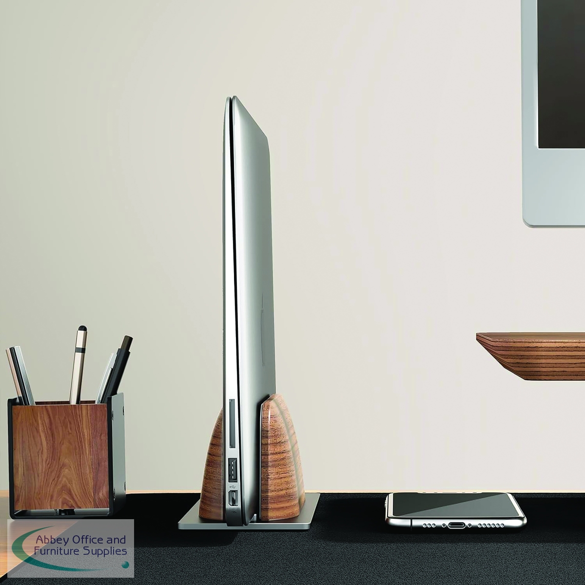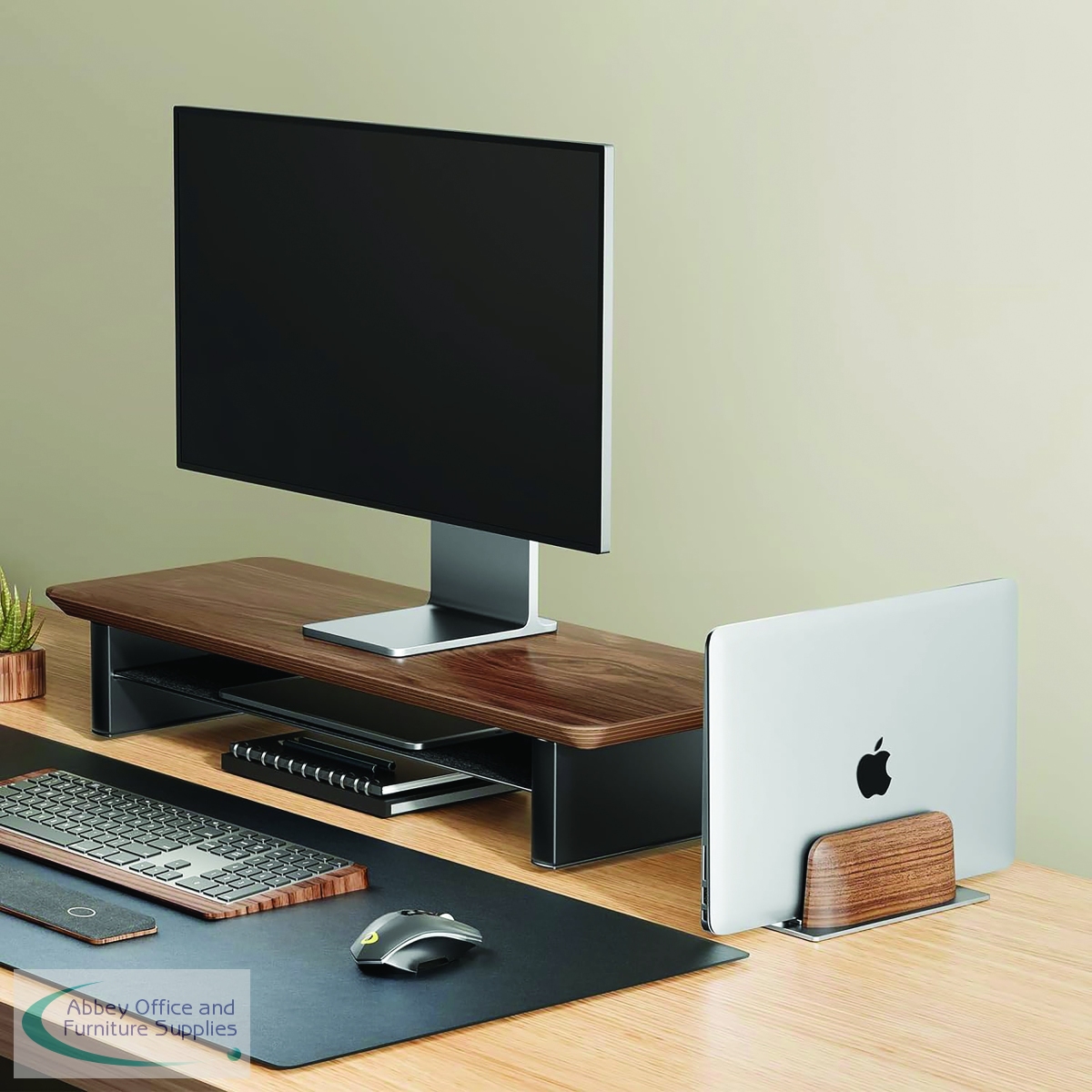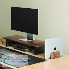 With a touch of design and modernity, combining walnut wood and black aluminium, the Alba vertical computer stand gives a new aesthetic dimension with a mix of colour and materials to transform workplaces with style and elegance. Offering an ergonomic position, this screen monitor helps to prevent back pain and reduces eye strain. Connected with 4 USB ports, it will also give a clear, uncluttered workspace by storing the keyboard and mouse underneath.