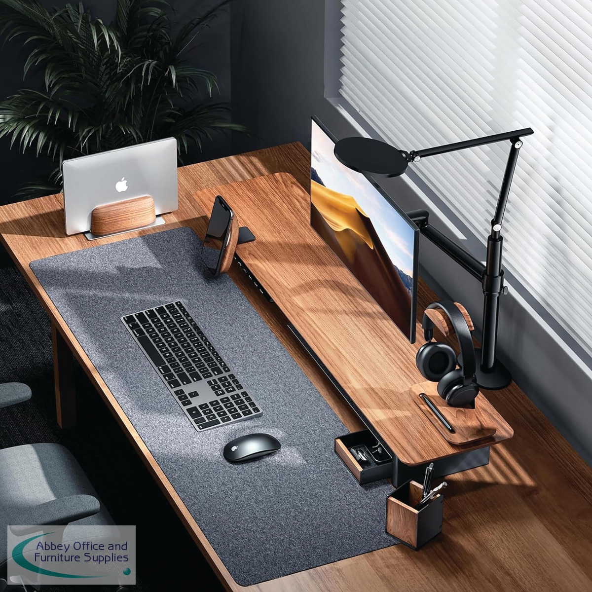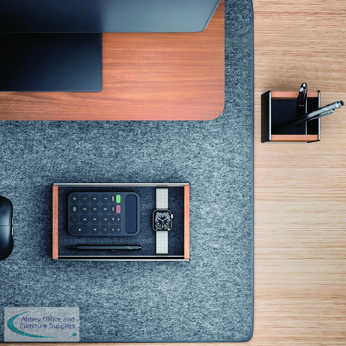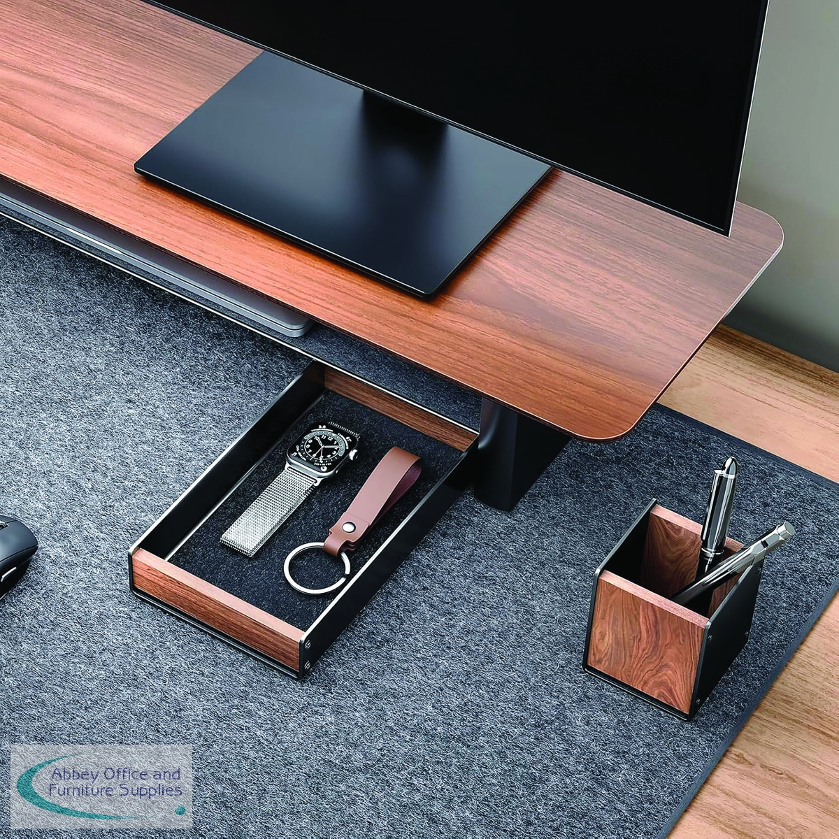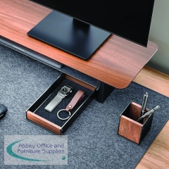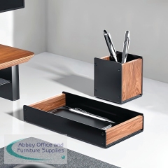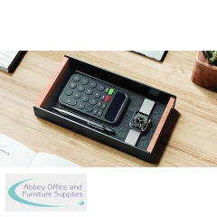 With a touch of design and modernity, combining walnut wood and black aluminium, the Alba desktop tray gives a new aesthetic dimension with a mix of colour and materials to transform workplaces with style and elegance. Keeping desktop essentials at hand, whilst still contained to avoid small items such as pens and pencils from rolling away.