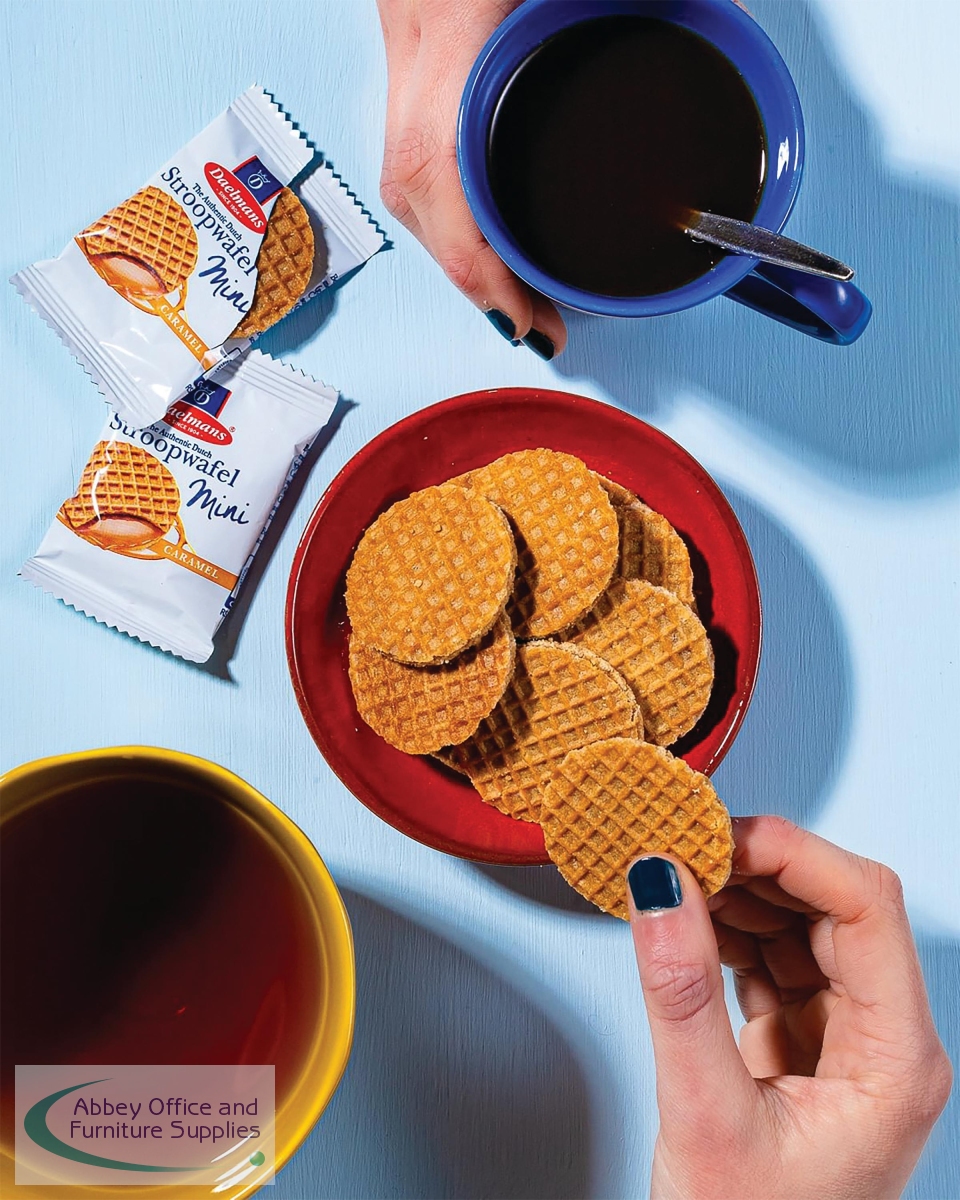 Daelmans Caramel flavoured mini Stroopwafels are made using fresh dough and caramel enriched with natural bourbon vanilla and cinnamon. A convenient and delicious mini snack. Supplied in a pack of 24.