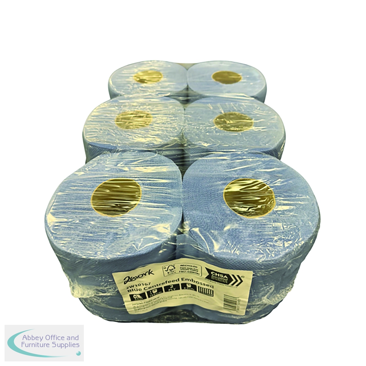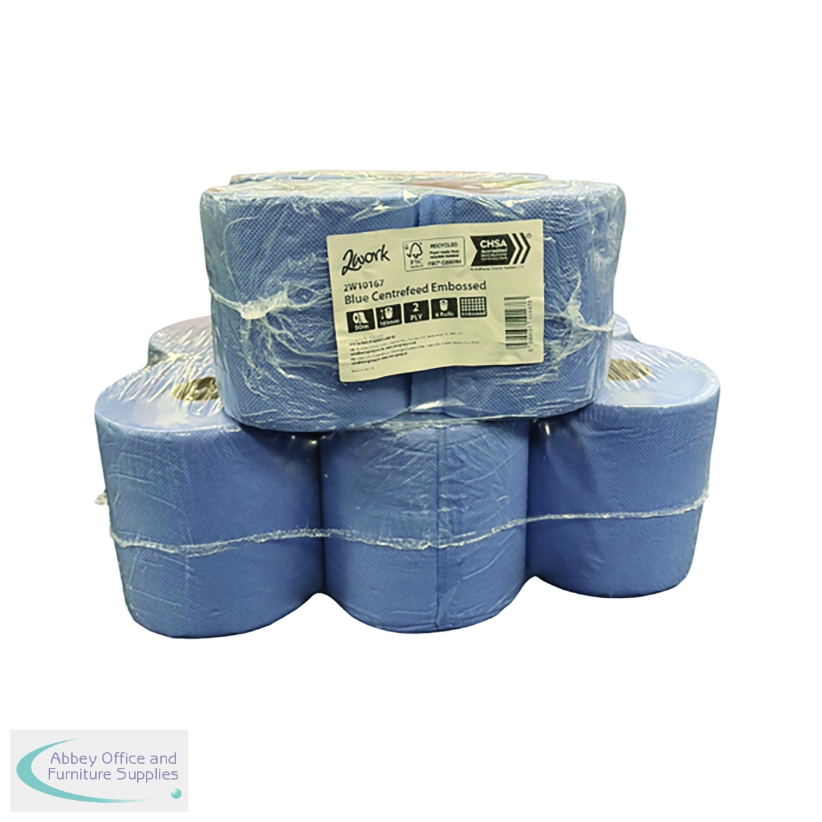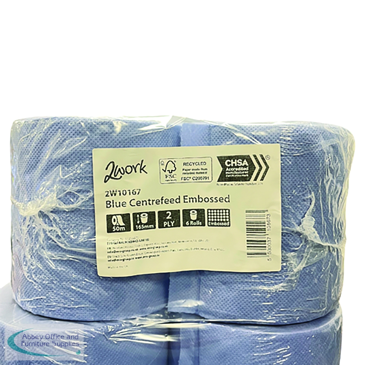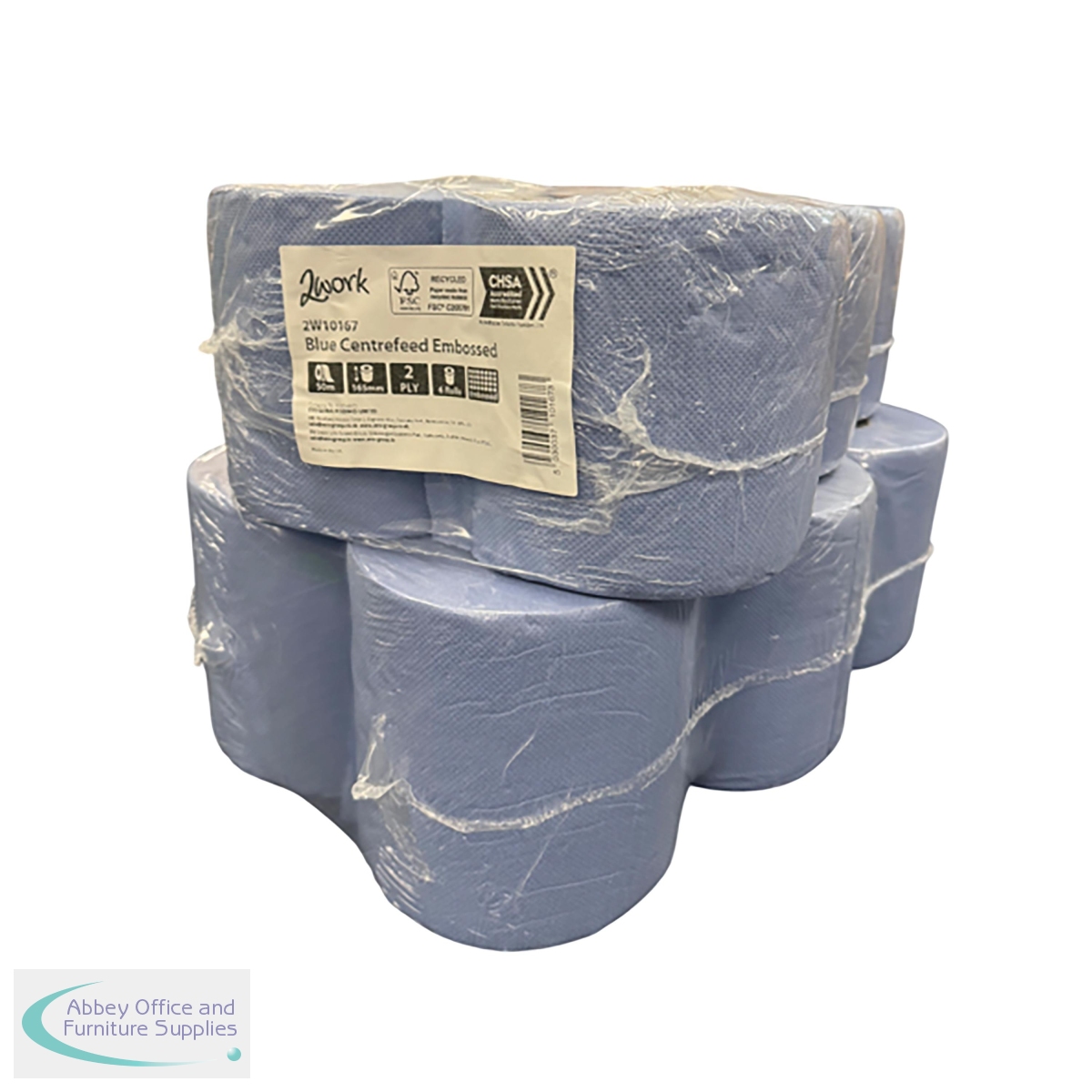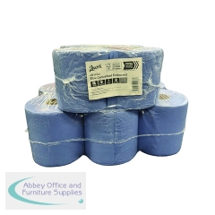 2W10167 - 2Work 2-Ply Embossed Centrefeed Roll 50m Blue (Pack of 6) 2W10167