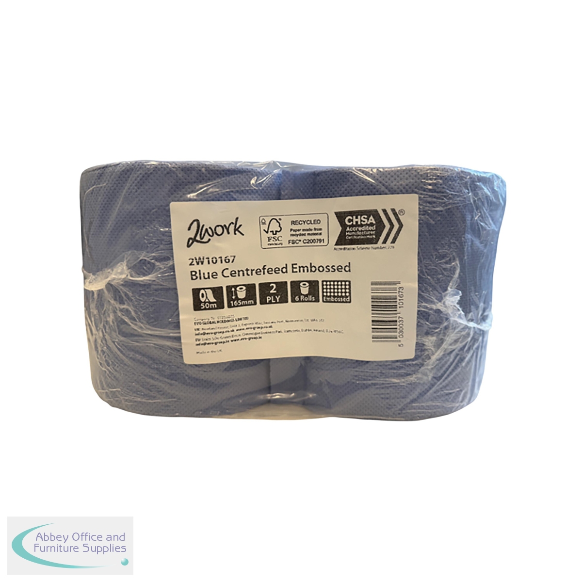 The 2Work 2-Ply Embossed Centrefeed Roll is a multi-purpose product that can be used for drying, hand wiping, glass cleaning and dining. It is a vegan friendly product with no animal testing or extract used. With 50 metres of paper on each roll, this FSC-certified item comes in a pack of 6.