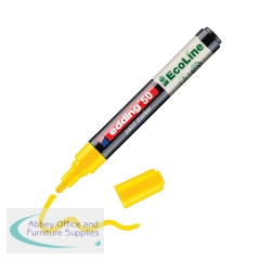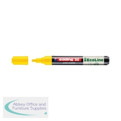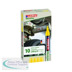 The edding 50 EcoLine paint marker combines professional quality with a strong commitment to sustainability for those who demand uncompromising performance. Its water-based paint ink delivers high opacity and enables permanent marking on a wide range of smooth surfaces, including glass, metal and plastic, as well as on dark or transparent materials. The ink dries quickly and is waterproof and lightfast, making it ideal for both indoor and outdoor use. The 2-3mm round nib ensures clean, consistent lines. The odourless ink is free from toluene and xylene and contains only low levels of volatile organic compounds (VOCs), making it pleasant and safe to use. For added longevity, the marker is refillable with edding LT 25 refill ink (Sold separately). Supplied in a pack of 10 yellow marker pens in a folding case.