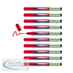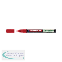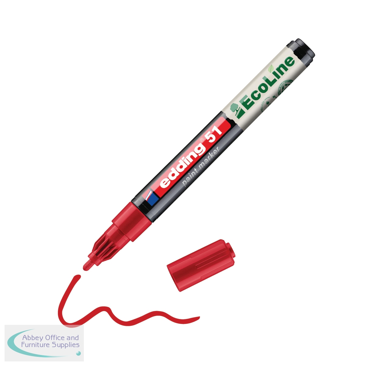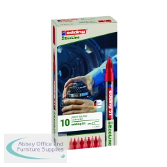 The edding 51 EcoLine paint marker combines professional quality with a strong commitment to sustainability for those who demand uncompromising performance. Its water-based paint ink delivers high opacity and enables permanent marking on a wide range of smooth surfaces, including glass, metal and plastic, as well as on dark or transparent materials. The ink dries quickly and is waterproof and lightfast, making it ideal for both indoor and outdoor use. The 1-2mm round nib ensures clean, consistent lines. The odourless ink is free from toluene and xylene and contains only low levels of volatile organic compounds (VOCs), making it pleasant and safe to use. For added longevity, the marker is refillable with edding LT 25 refill ink (Sold separately). Supplied in a pack of 10 red marker pens in a folding case.