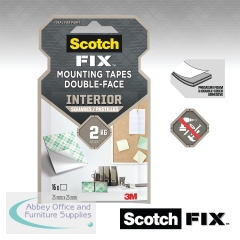 Scotch-FIX interior mounting foam squares are intended for indoor use and is ideal on painted drywall, finished wood, metal, acrylic, tile and glass. Measuring 25 x 25mm, these double sided mounting squares in white, each hold up to 2kg, making them ideal for indoor repairing or mounting such as a kitchen roll holder, chalkboards, keyring holder, desk organisers and more.