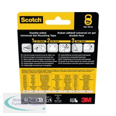 Scotch Universal Gel Tape is a clear, double-sided mounting tape. The ideal solution for mounting on a variety of hard surfaces, securely holding up to 9 kg. The gel tape is suitable for light and heavy mounting applications and is water resistant offering a strong bond even in wet or humid conditions. Measuring 30mm x 3m, this gel tape is clear and removable when no longer required.