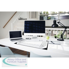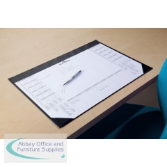 Durable black desk mat with paper inlay (25 sheets) which is perfect for making notes whilst on the phone. The paper inlay has a 2 year calendar printed onto it which includes international bank holidays and a weekly schedule. Measuring W590 x H420mm, the desk mat provides a comfortable surface to write on.