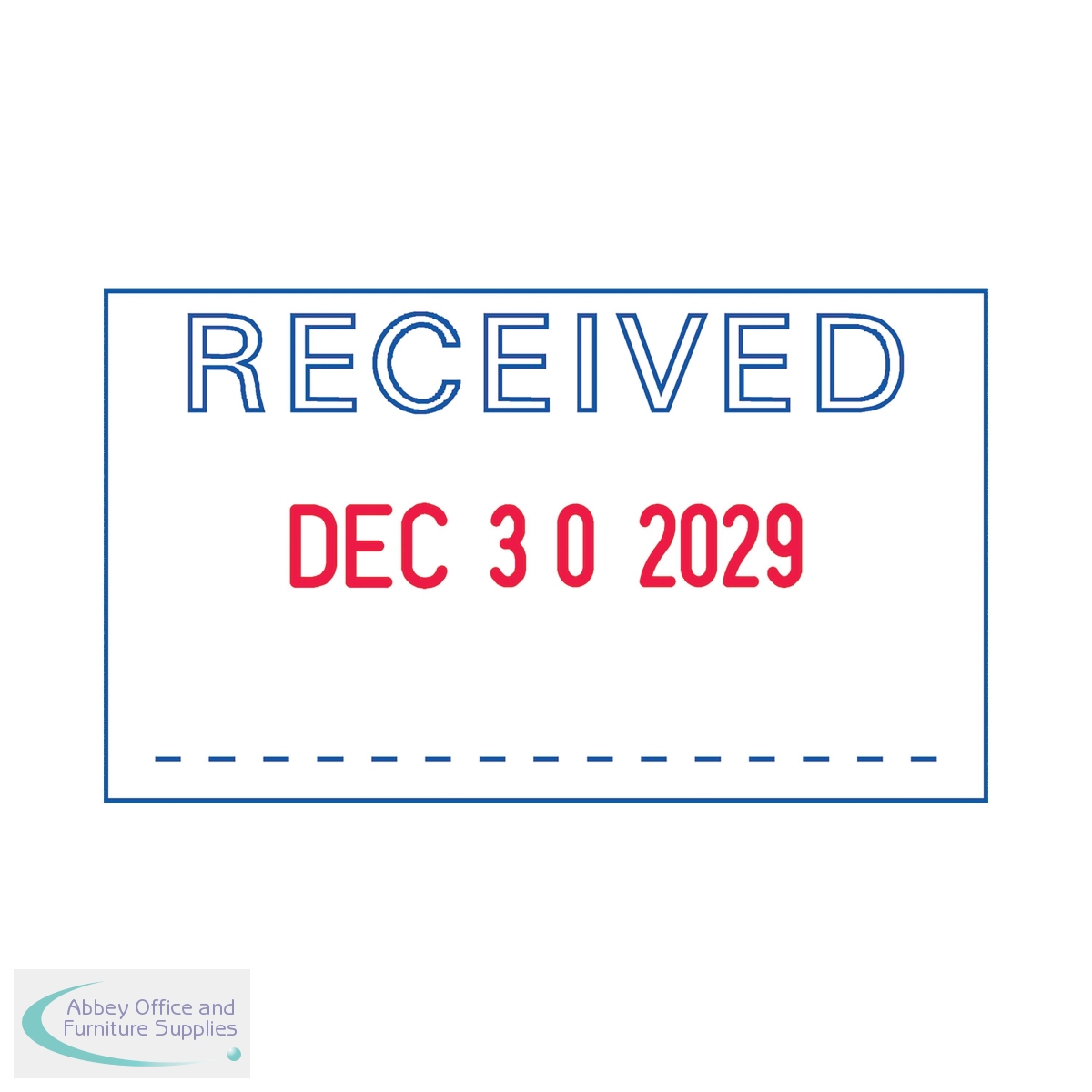 If you are looking for an impression that combines the date with text, the Printy Daters with Text are exactly what you are looking for. This 4750 Printy Dater comes with the word received, printed in blue, with the date underneath which is printed in red.