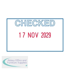 If you are looking for an impression that combines the date with text, the Printy Daters with Text are exactly what you are looking for. This 4750 Printy Dater comes with the word checked, printed in blue, with the date underneath which is printed in red.