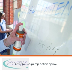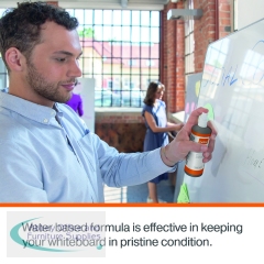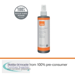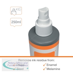 This whiteboard cleaner is ideal for maintaining whiteboards, keeping them in pristine condition. The 250ml bottle is made from 100% pre-consumer recycled plastic and contains a water-based formula that is gentle yet effective. Effortlessly removing ink residue from all dry wipe whiteboard surfaces, the formula is ideal for daily maintenance. This dry erase whiteboard cleaner is perfect for classrooms, offices, or home offices. For optimal results, use with a Nobo whiteboard eraser.