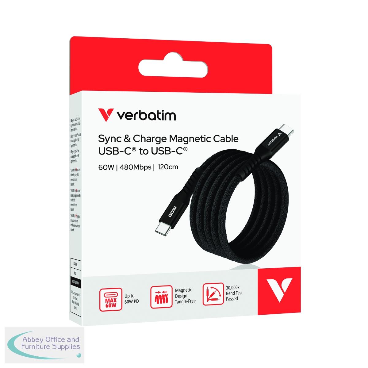VM31859 - Verbatim Sync + Charge Magnetic Cable 60W USB-C to USB-C 120cm Black 31859