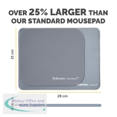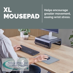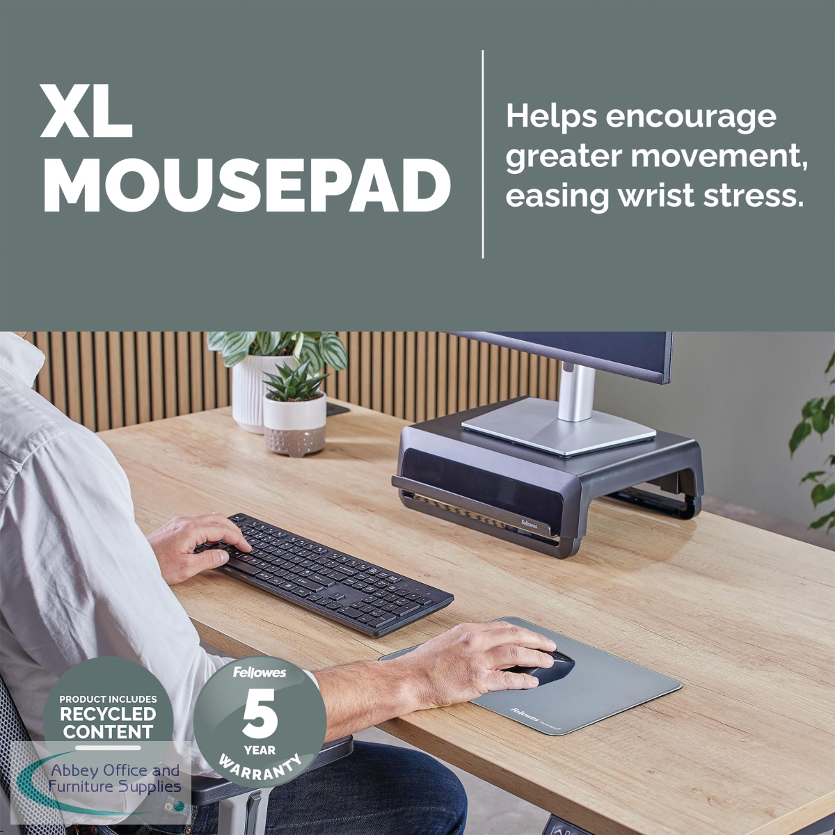 The Fellowes Breyta XL Mouse Pad is designed to encourage greater movement and reduce small, repetitive motions that can lead to wrist discomfort. Compatible with both optical and laser mice, it not only protects your desktop but also enhances mouse performance. The mousepad features built-in antibacterial technology that works around the clock to provide hygienic protection by reducing the number of germs on the surface. Its non-slip base ensures it stays securely in place throughout the day, while reinforced stitched edges add durability and prevent fraying. Measuring H25 x W280 x L210mm, the Breyta XL mousepad offers ample space for smooth and unrestricted mouse movement.