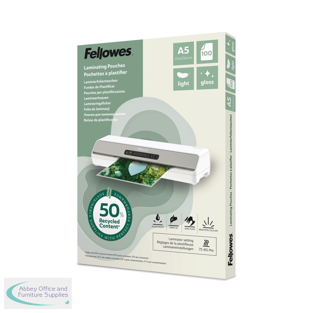 BB81392 - Fellowes Recycled A5 Laminating Pouches Gloss 80 Micron (Pack of 100) 100143440