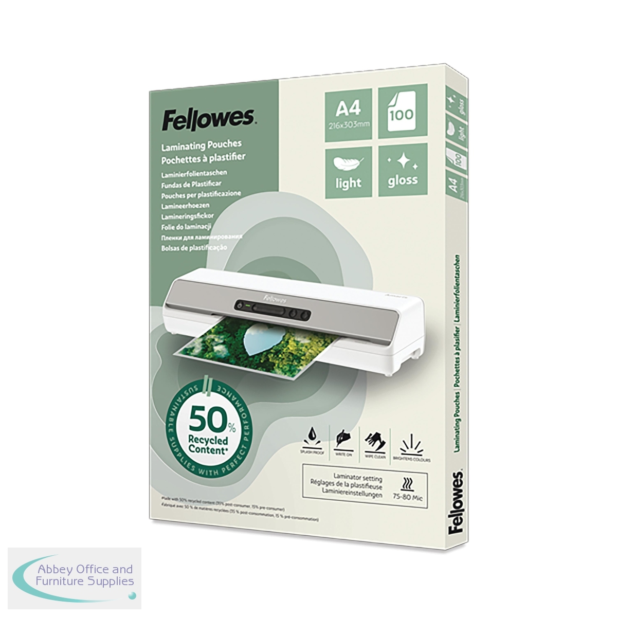 BB81335 - Fellowes Recycled A4 Laminating Pouches Gloss 80 Micron (Pack of 100) 100142987