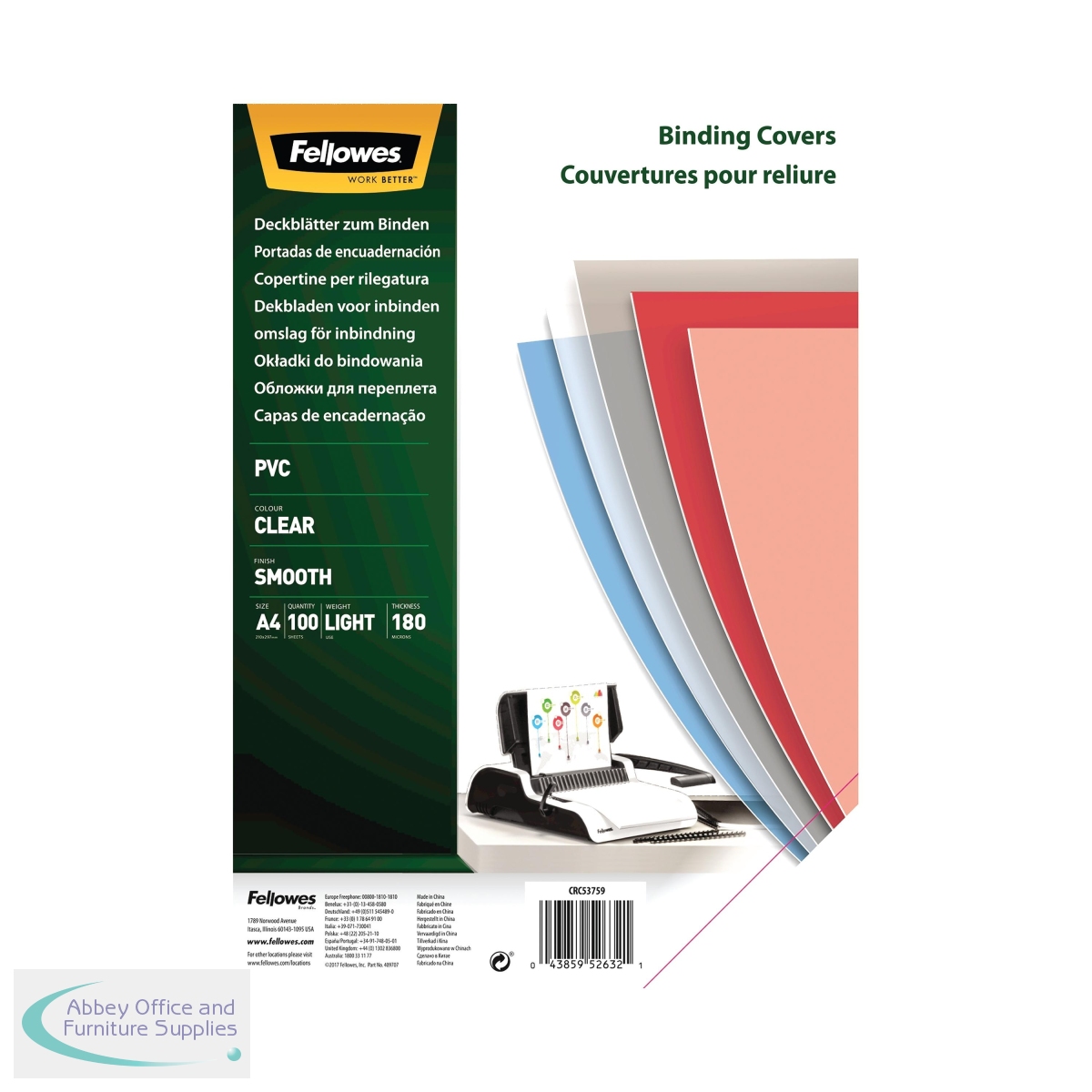 BB52632 - Fellowes Recycled A4 PVC Binding Covers Clear 180 Micron (Pack of 100) 5375901