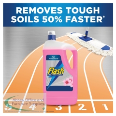 Flash Professional All Purpose Cleaner Cherry Blossom is a hardworking formulation designed to cut through grease, dirt and grime. Suitable for a wide range of surfaces including floors, countertops and kitchen worktops, the formula is effective in all water conditions, leaving a floral scent behind. Supplied in pack of two 5 litre bottles.