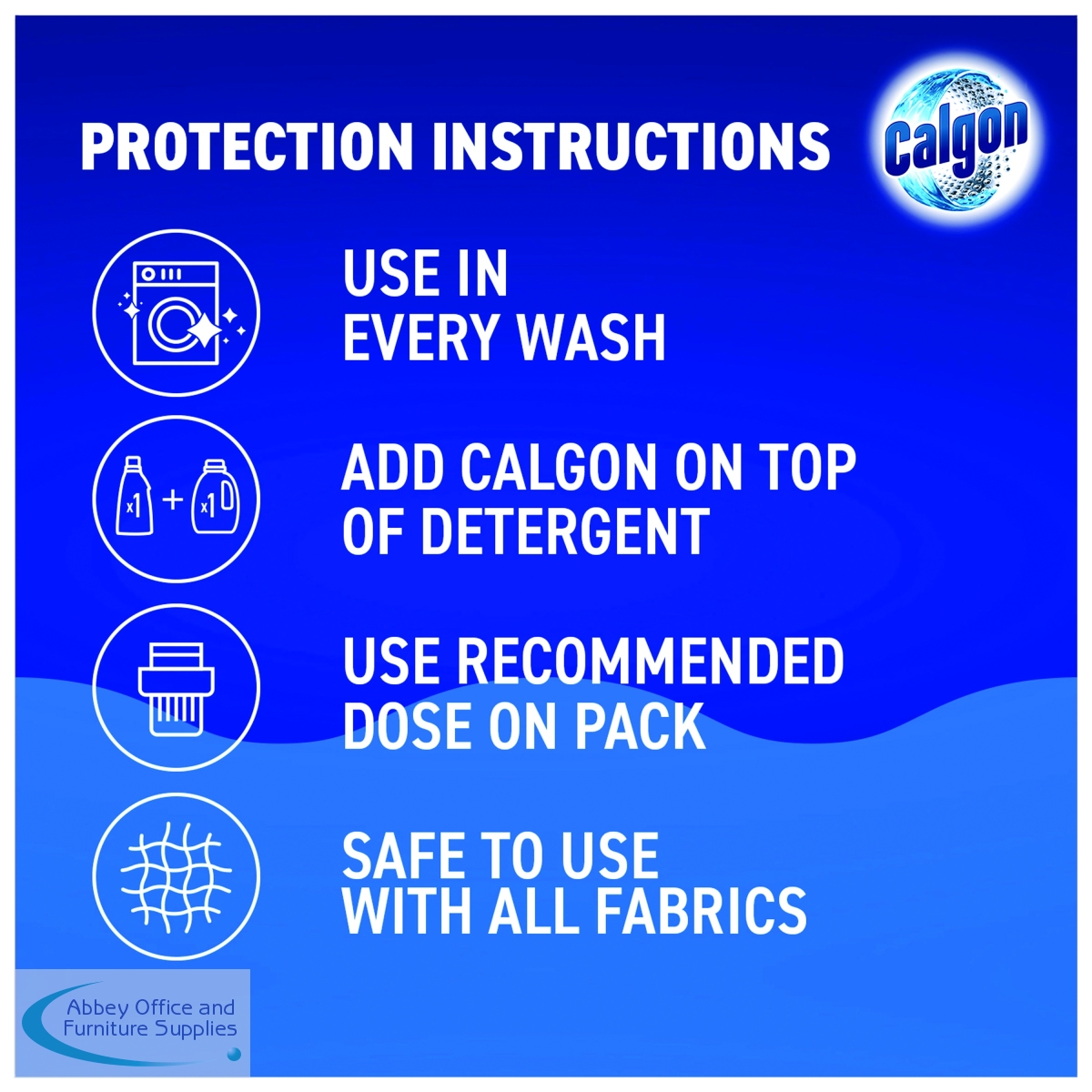 Calgon 4-in-1 water softener tablets are fast acting to boost efficiency for your washing machine by preventing limescale build-up and helping your washing machine to live longer. It's suitable to use alongside your washing liquid, washing capsules and washing powder. Simply add one Calgon 4-in-1 tablet to each wash into the detergent section of your washing machine with your laundry in addition to your usual laundry detergent for limescale prevention, removal of dirt and residue as well as odour elimination.