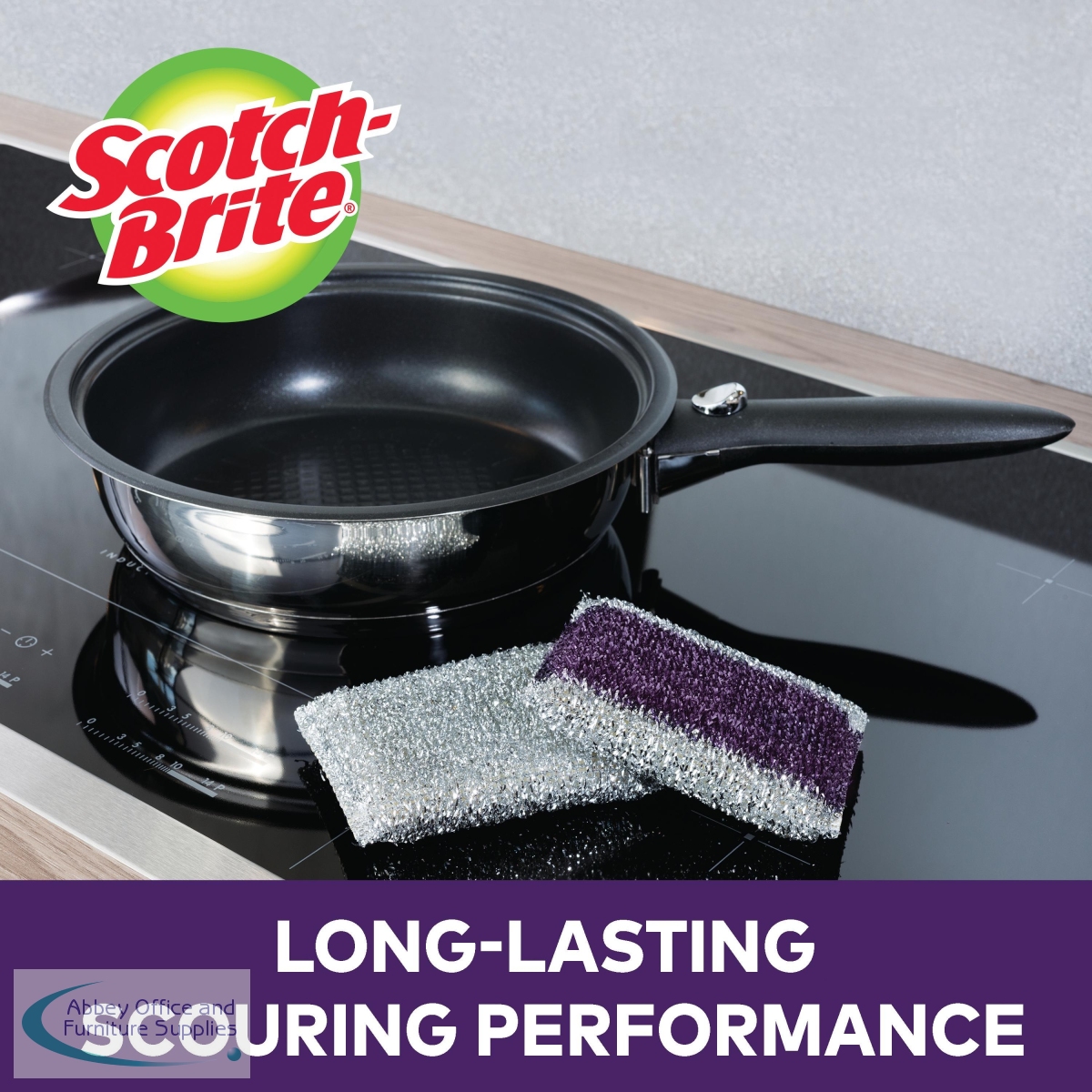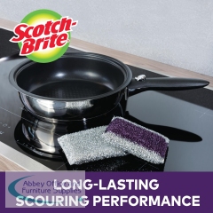 The Scotch-Brite Duo has is all-purpose, non-scratch scourer for cleaning pots and pans, including non-stick cookware and fragile surfaces such as glass. Its ergonomic design has curved sides to protect fingernails during cleaning. Supplied in a pack of 2.