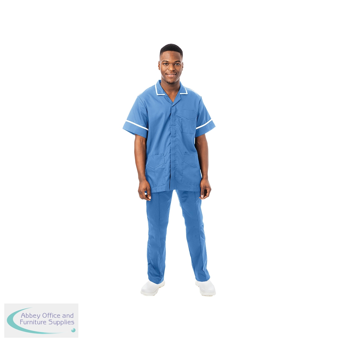 WIS09260 - Work in Style PHILZ Male Healthcare Tunic Hospital Blue with White Trim Size 44 inch PHILZHOSPWHIT44