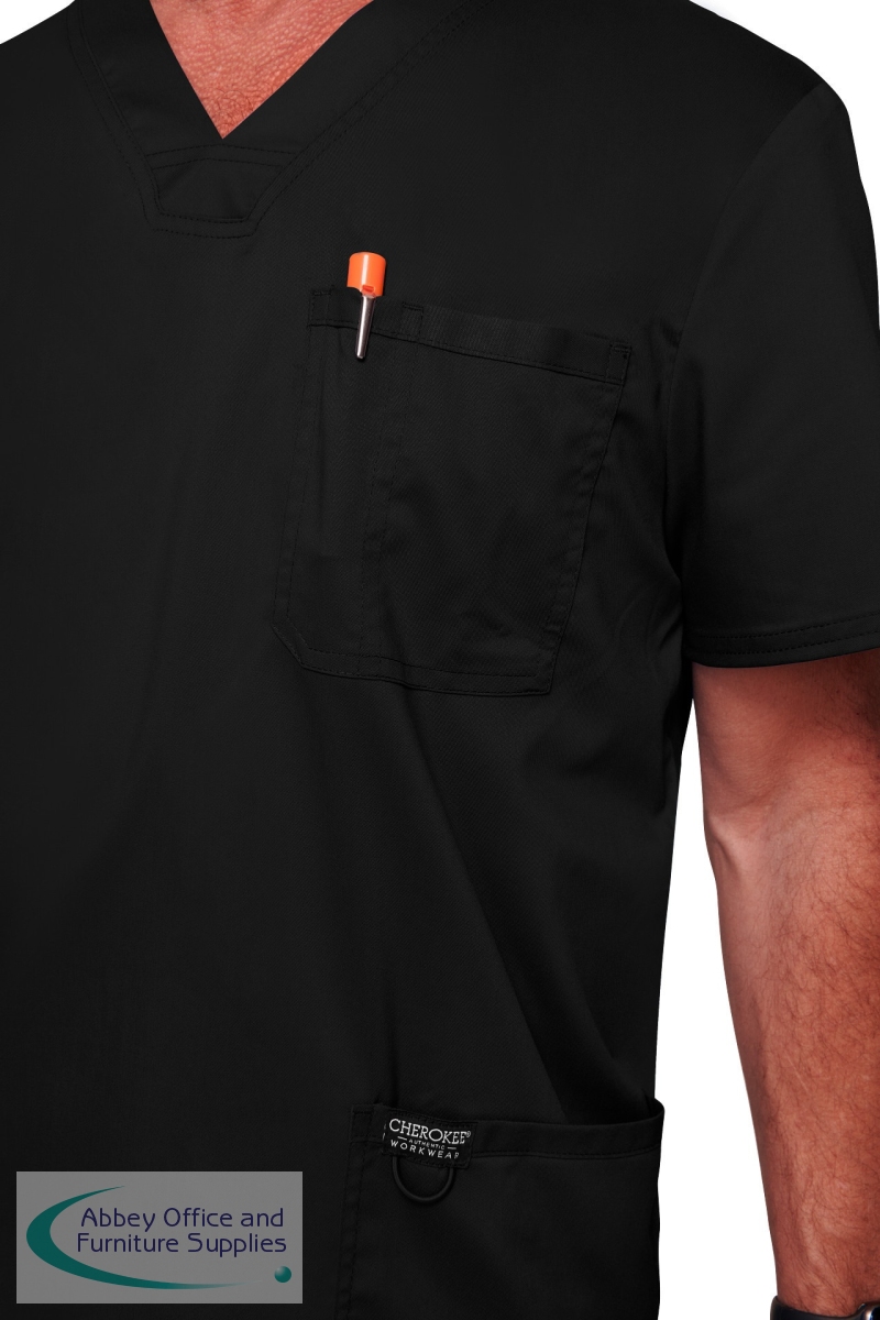 A classic fit V neck scrub top from the Cherokee Revolution range. This is a classic fit scrub top in sizes XXS-3XL to suit all body shapes and sizes. This top is designed with comfort and practicality in mind, with 3 pockets, a bungee loop and side vents.