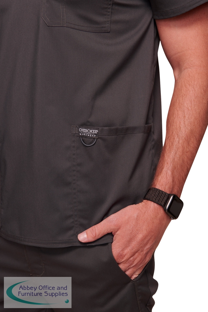 A classic fit V neck scrub top from the Cherokee Revolution range. This is a classic fit scrub top in sizes XXS-3XL to suit all body shapes and sizes. This top is designed with comfort and practicality in mind, with 3 pockets, a bungee loop and side vents.