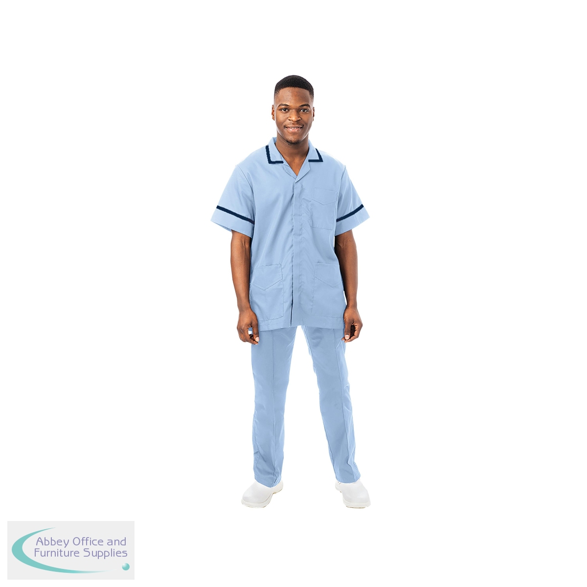 WIS31687 - Work in Style PHILZ Male Healthcare Tunic Sky with Navy trim Size 38 inch PHILZSKYYNAVY38