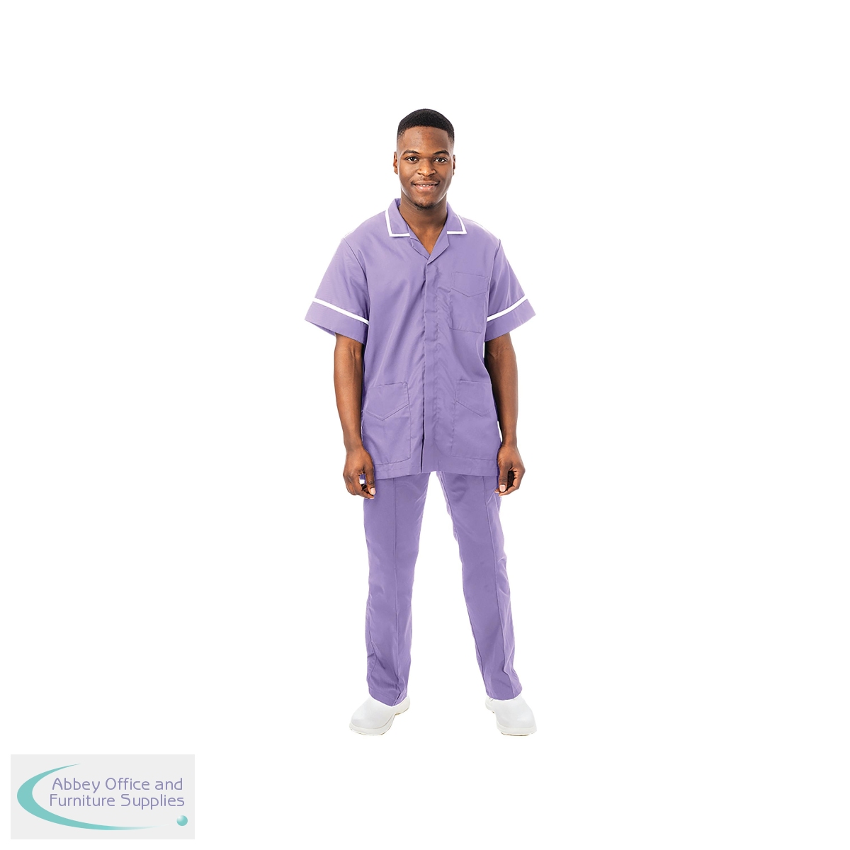 WIS43876 - Work in Style PHILZ Male Healthcare Tunic Lilac with White Trim Size 46 inch PHILZLILAWHIT46