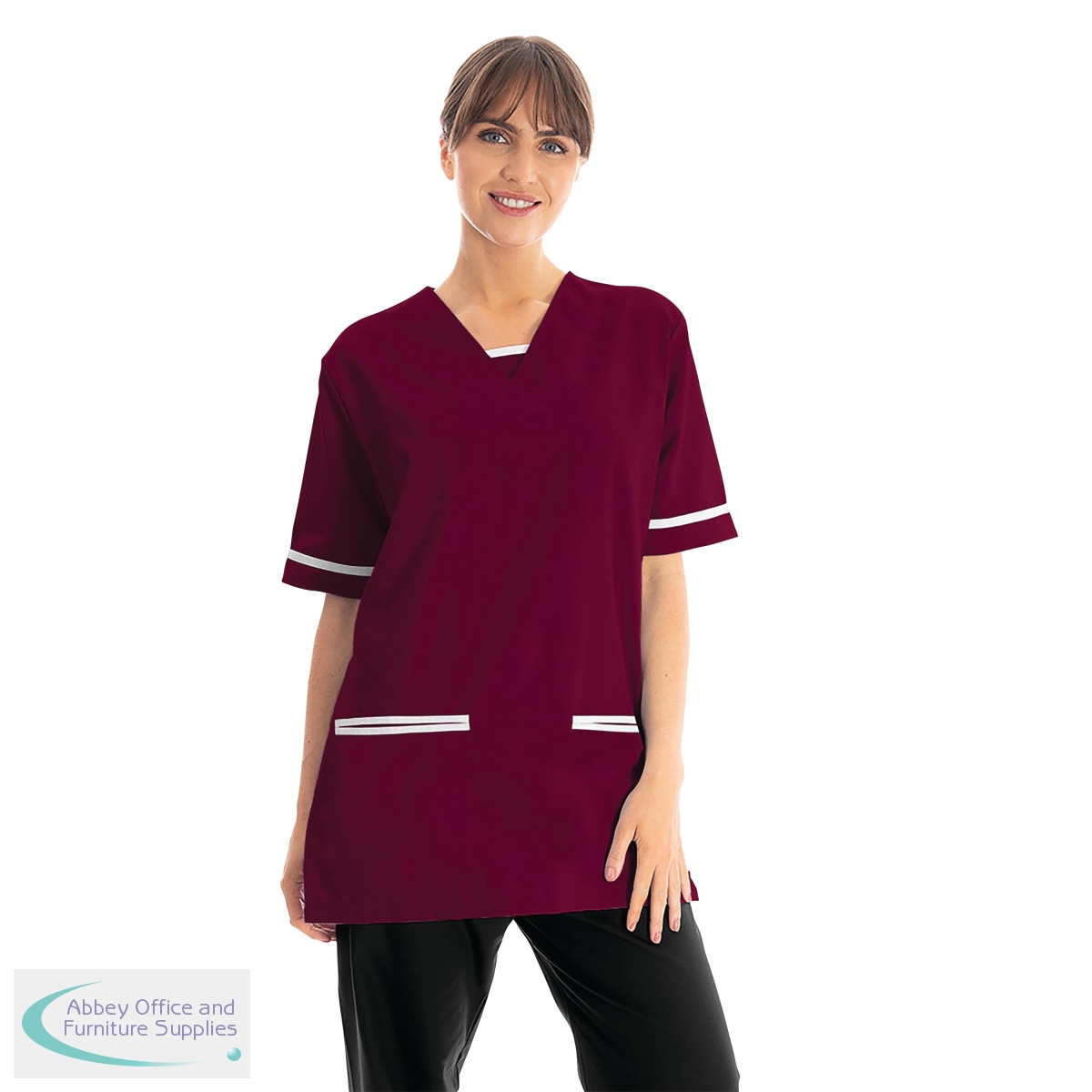 WIS77627 - 534LW V Neck Lightweight Scrub Top with Trim Maroon 2XL 534LWMAROWHIT2XL