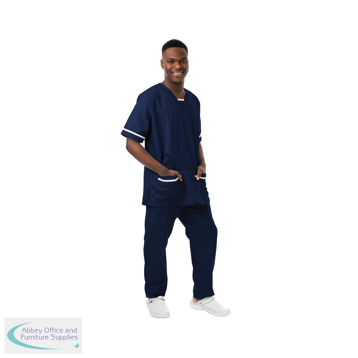 WIS77636 - 534LW V Neck Lightweight Scrub Top with Trim Navy L 534LWNAVYWHITL