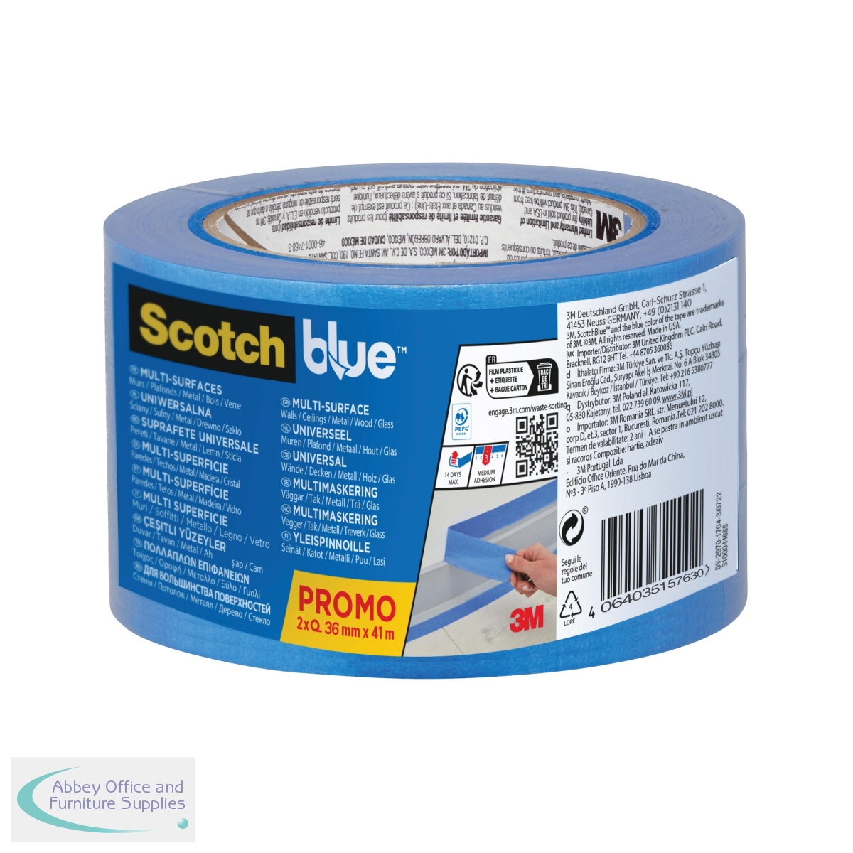 3M15763 - ScotchBlue Multi-Surface Masking Tape 36mm x 41m (Pack of 2) 7100327193