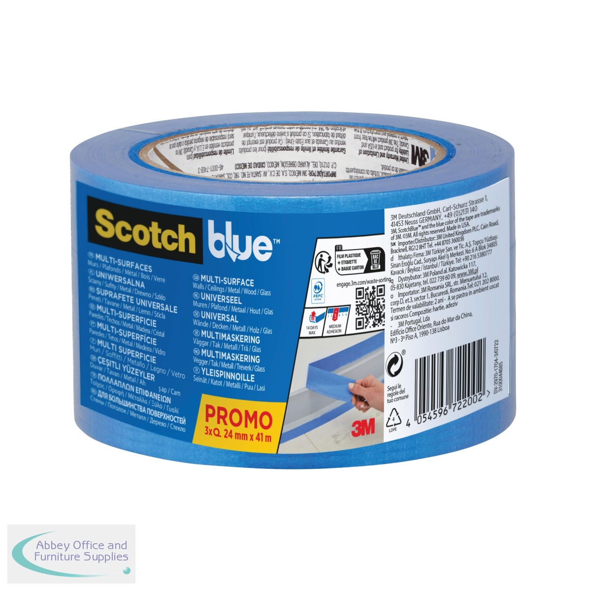 3M72200 - ScotchBlue Multi-Surface Masking Tape 24mm x 41m (Pack of 3) 7100289932