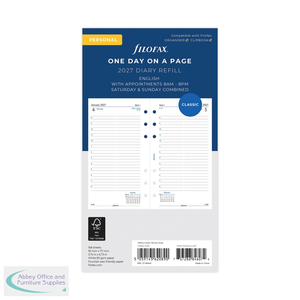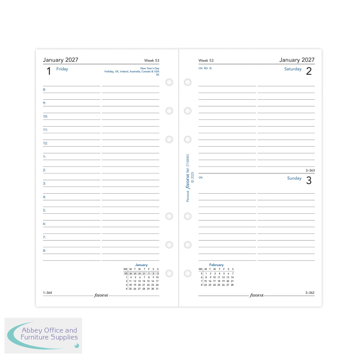 FX62089 - Filofax Refill Day Per Page Personal White 2027 27-68441